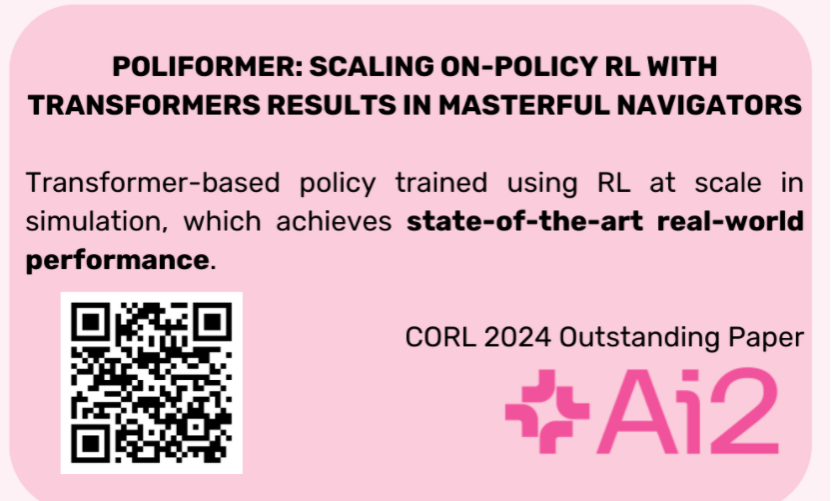艾伦人工智能研究院(AI2)提出的 PoliFormer 导航框架,基于 Transformer 与强化学习,实现从感知到动作的端到端学习。在 Stretch 3 机器人上验证显示,其可在人流密集的医院走廊中,根据“找到那本书”等指令完成导航,避障响应仅 0.4 秒,成功率 95%。为移动操作机器人在公共场景应用奠定了基础。