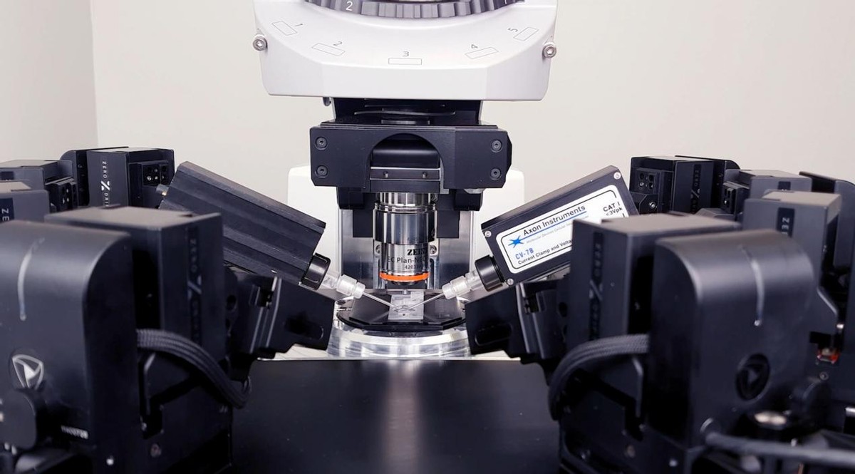 图片来源官网:可以同时记录十个神经元的实验设备,来自柏林夏里特医院的Jörg Geiger教授团队。