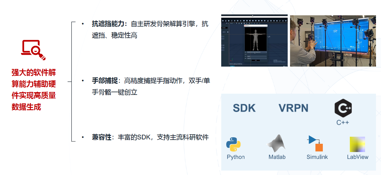 应用场景:适用于算法验证实验室、虚拟拍摄(XR)、人机交互研究、康复评估及复杂多智能体协同系统。