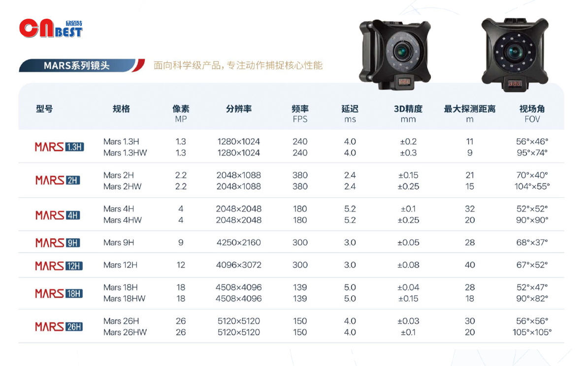 Mars系列是NOKOV专为科学研究与工业应用打造的专业级光学动作捕捉相机,提供从130万到2600万像素的全谱系产品矩阵,满足从基础运动分析到超高精度定位的多元化需求。