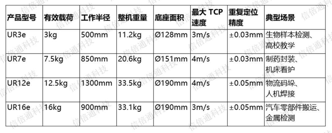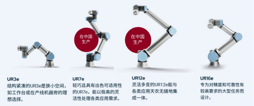 - E 系列(UR3e/UR7e/UR12e/UR16e):经典成熟款,高性价比易集成,是科研入门与工业量产研发首选。