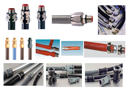 金属、非金属水密软管及接头即可用于常规电缆机械保护、也可用于极端温度、EMC、防爆等保护,还可提供低压无卤、多种色彩等选择,可用于从机床、电脑配线、办公家具、核电站、公交车辆、军事防护和工业OEM等。