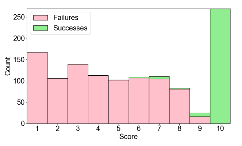 图4: 参与者反馈分数分布,显示成功和失败动作的评分差异